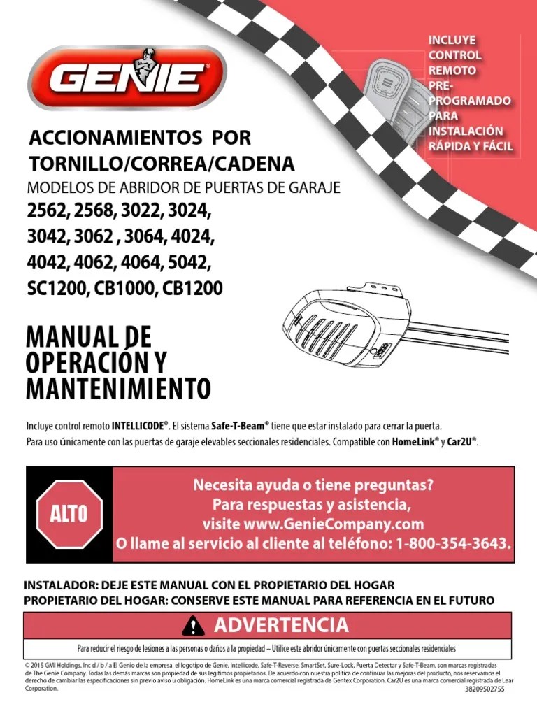 (the cord is way too long but you can cut it to length.) Click here to program chamberlain garage door opener! Step by step instruction on how to program the chamberlain clicker universal remote control aka liftmaster 375ut to vary garage door openers inc;brand&model. Genie garage door opener user manual. Headquarters in ohio can answer your genie operator and. Remote / keypad programming instructions. There is no mention of this unit on the genie website. 2035, 2036, 2055, 3035, 3055, 7035, 7055. Most genie garage door openers also have the model number under the light bulb cover on the power head or on the back panel. Intellig 1000 3024 garage door opener pdf manual download. The owners manual has the model on the front page of the manual. This kit includes a longer belt, an extra long railing piece and an extra long manual door release cord. Click on the pdf icon to view the manual that had been on the genie website.